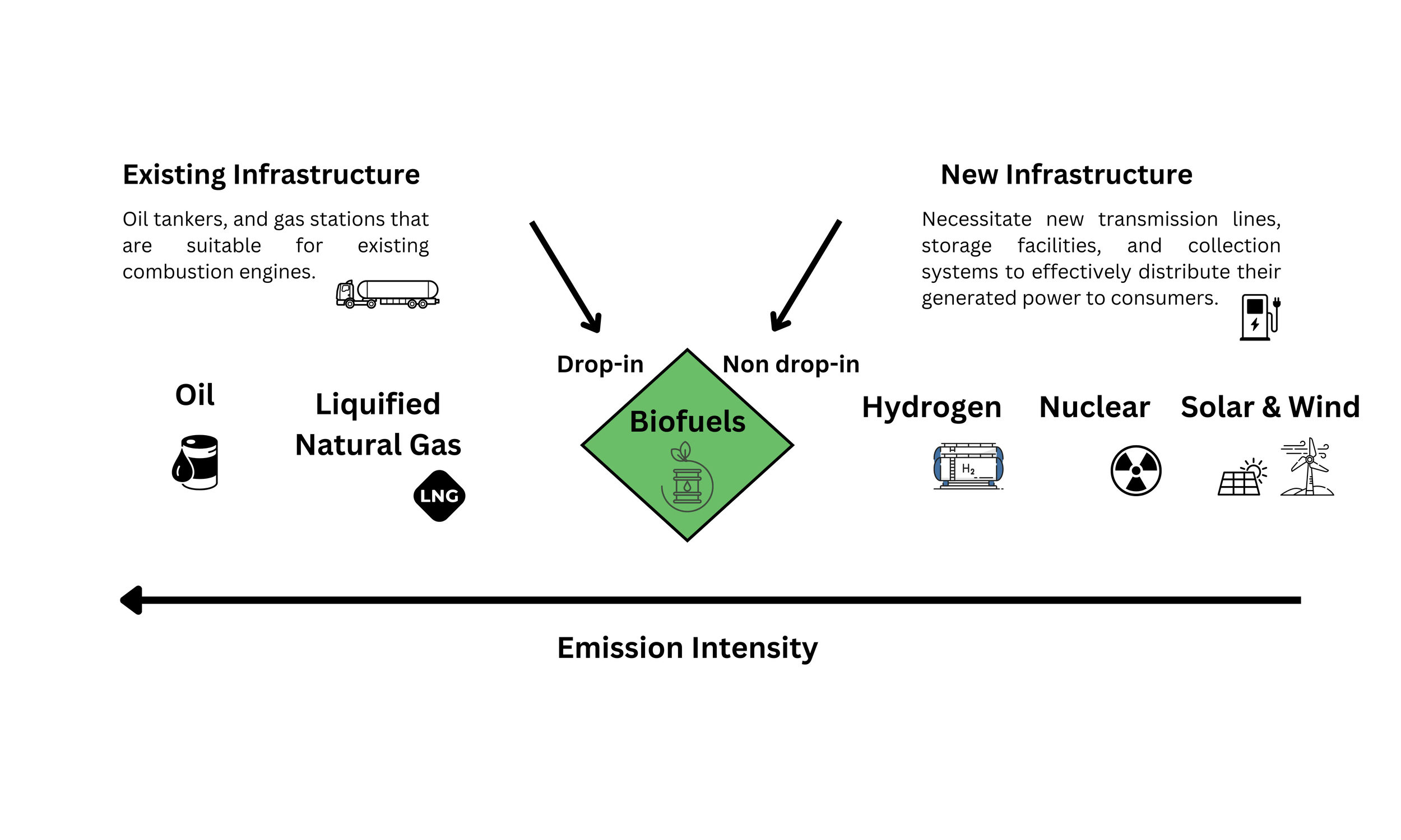 Source: Author’s own creation. Note: Biofuels and hydrogen can have similar emission profiles.